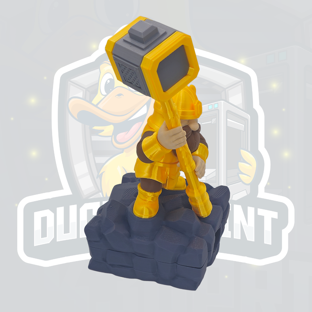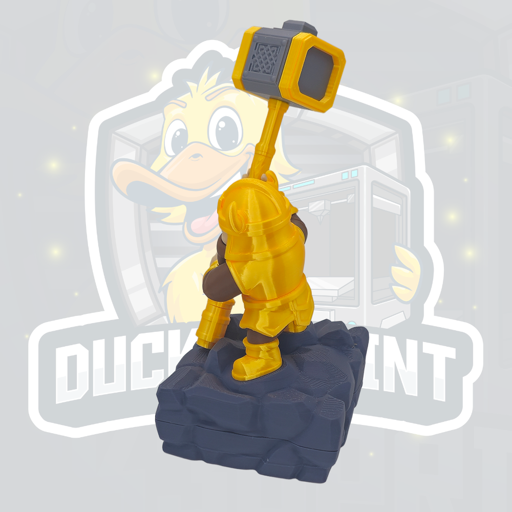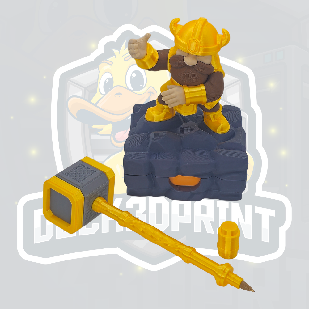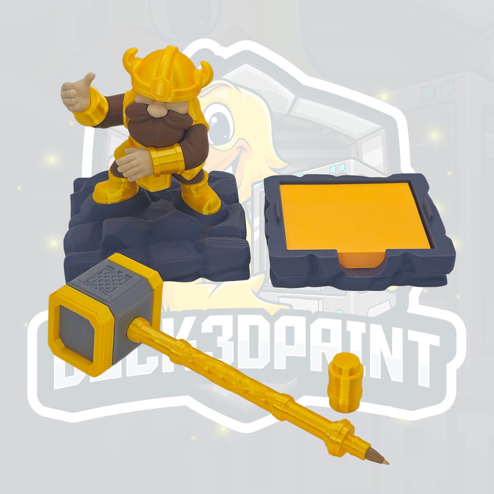 Forged for writing and built to last - this dwarf-inspired desk organiser is hammered into shape to bring order to even the messiest desk. Standing firm with a mighty hammer in hand, this fantasy figure is both a bold display piece and a practical desk companion. Designed to hold pens, pencils, and sticky notes, it keeps your everyday tools right where you need them while adding character to your workspace. Solid, reliable, and made to last, this organiser is perfect for gamers, fantasy fans, and anyone who appreciates craftsmanship with a sense of fun. Features - Holds a custom pen and sticky notes - Dwarf-inspired fantasy design - Ideal for desks, gaming setups, and home offices - Functional organiser and display piece - 3D printed with care for a high-quality finish Perfect For - Fantasy and RPG fans - Gamers and streamers - Unique desk decor lovers - Gifts for creatives, coworkers, or students ⚠️ Decorative desk accessory. Not a toy. Colours may vary slightly due to screen settings and filament batches.