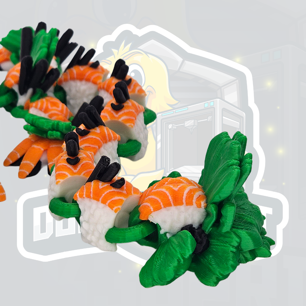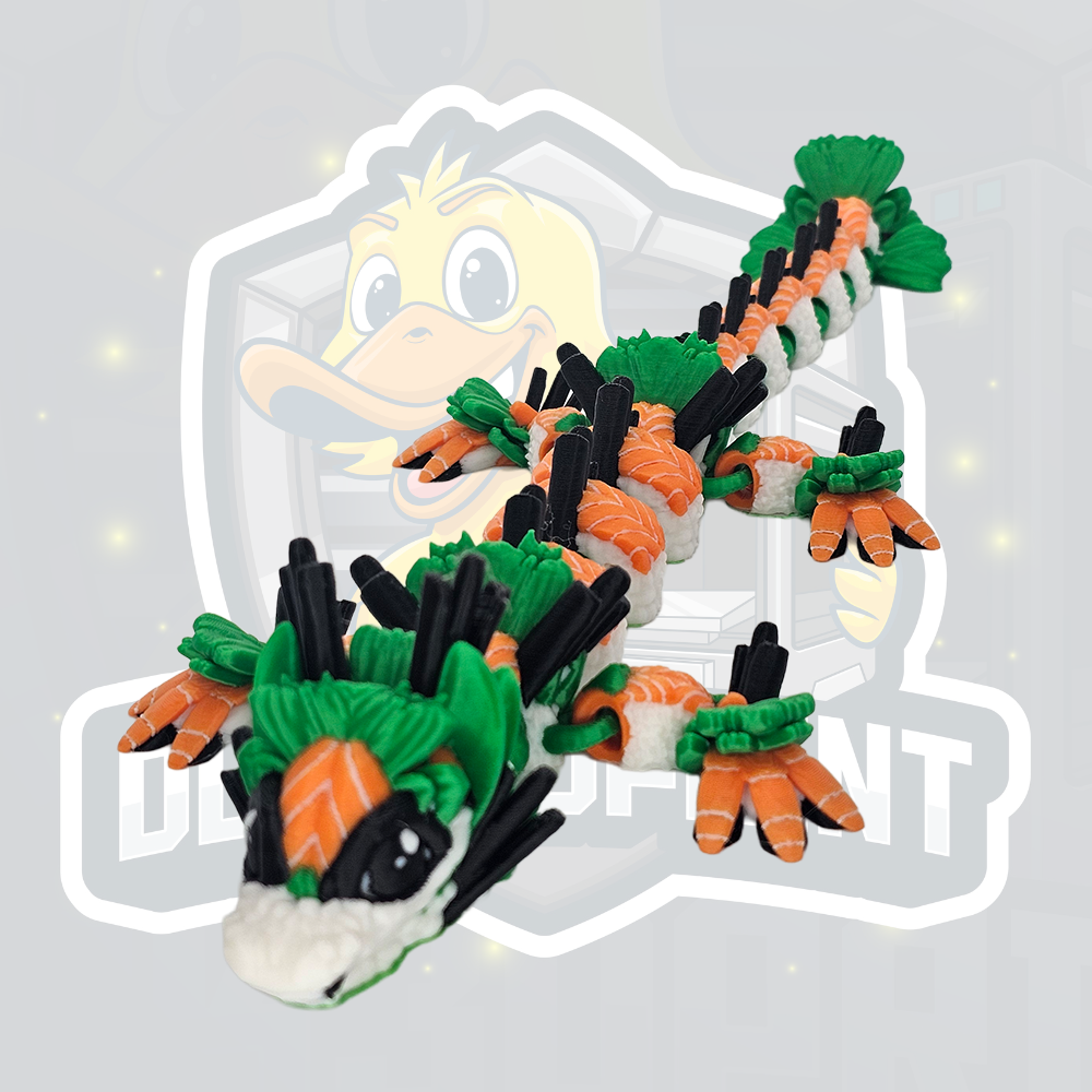 Bring a playful twist to mythical creatures with this Sushi Dragon articulated figure! Inspired by Japanese cuisine and fantasy dragons, this unique design combines sushi-style details with a long, flexible dragon body that’s full of character.